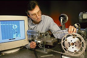 El equipo dirigido por el profesor James Spicer utilizó un mecanismo basado en un freno electromagnético para simular la carga en el piñón y un motor eléctrico para simular el pedaleo del ciclista midiendo el torque y la velocidad angular en ambos ejes a fin de calcular la potencia en el plato y el piñon: